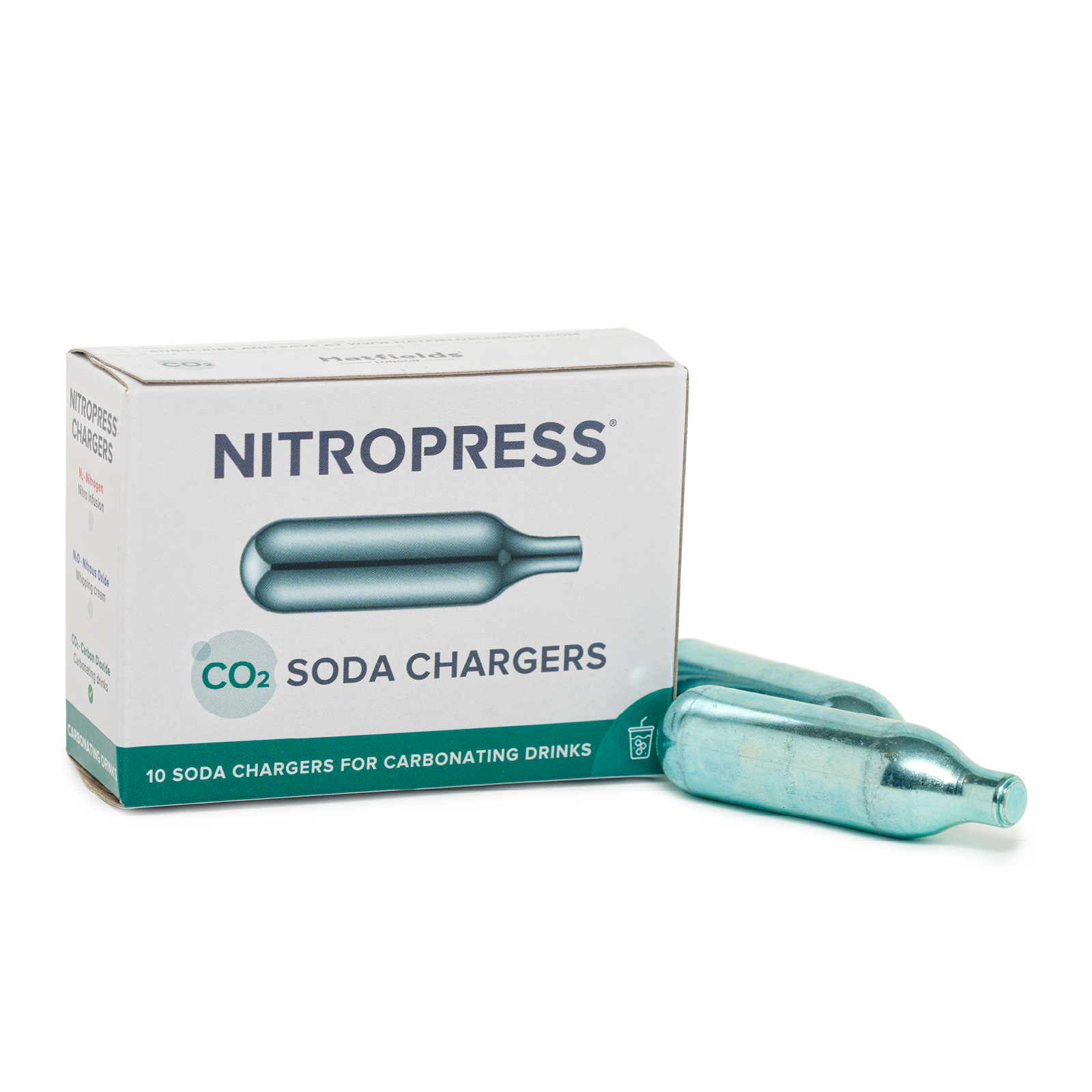 Our natural CO2 soda charger bulbs are designed to fit the NitroPress. Also ideal for They allow you to carbonate any type of liquid - wine, cocktails, fruit & green teas, unstrained citrus juices, raspberry & strawberry juices and even tomato juice.